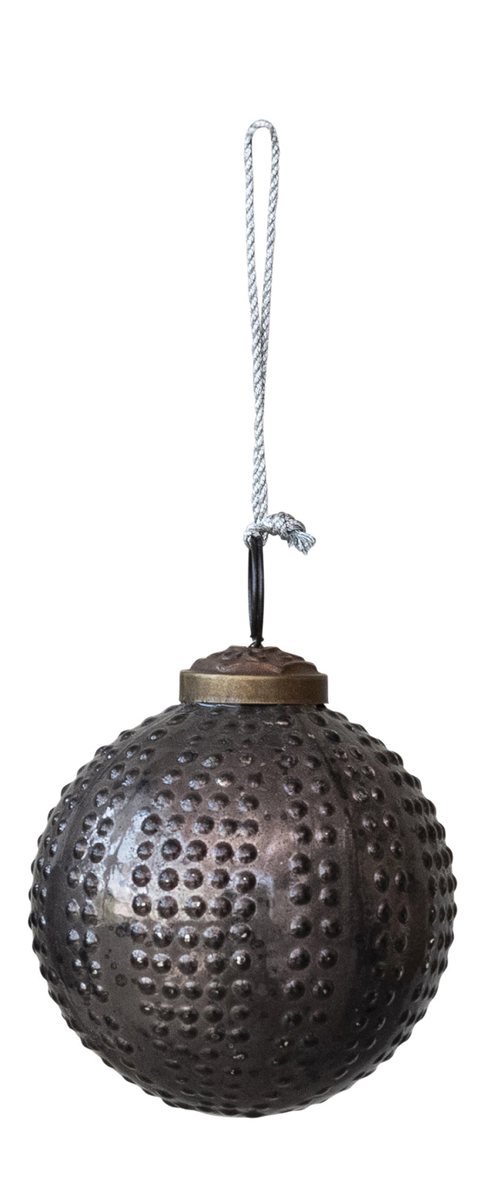 A burnished brown finished ornament with a raised circular pattern and slightly distressed look