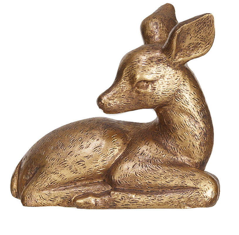A little deer in a gold finish, pairs perfectly with the Holiday Fox and Holiday Bear. Sleepy little ones to add to your Holiday table scape.